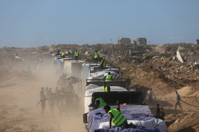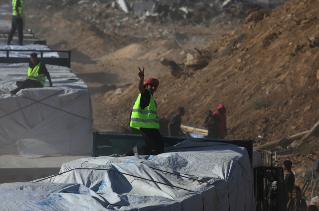 İsrail ordusunun ateşkesin yerel saatle 12.00’de devreye girdiğini duyurmasının ardından, Filistinli tüccarlara ait gıda ve meyve yüklü tırlar, Netzarim Koridoru’nun güneyinde bulunan Salahaddin Caddesi üzerinden Gazze Şeridi’ne giriş yaptı.
